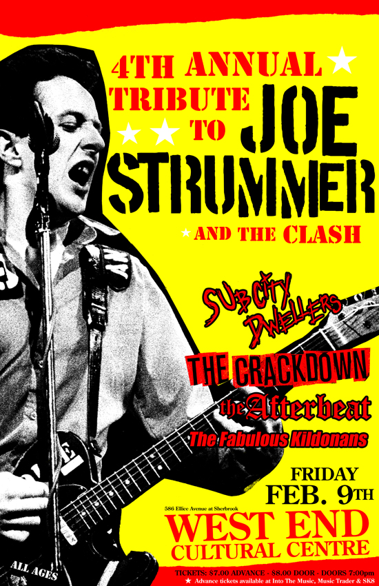 Joe Strummer Tribute For a number of years we were asked to design the (not so) annual tributes to the late Joe Strummer of The Clash. Some of these designs date back a number of years, so forgive the questionable design choices. Like Loading... Related